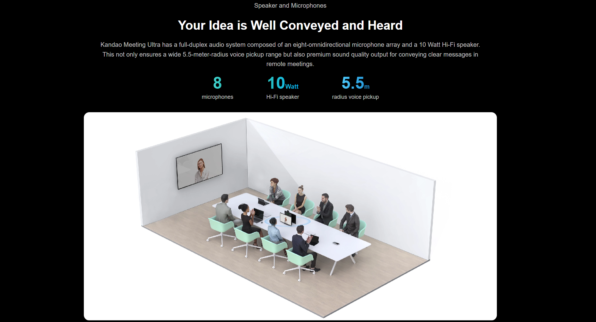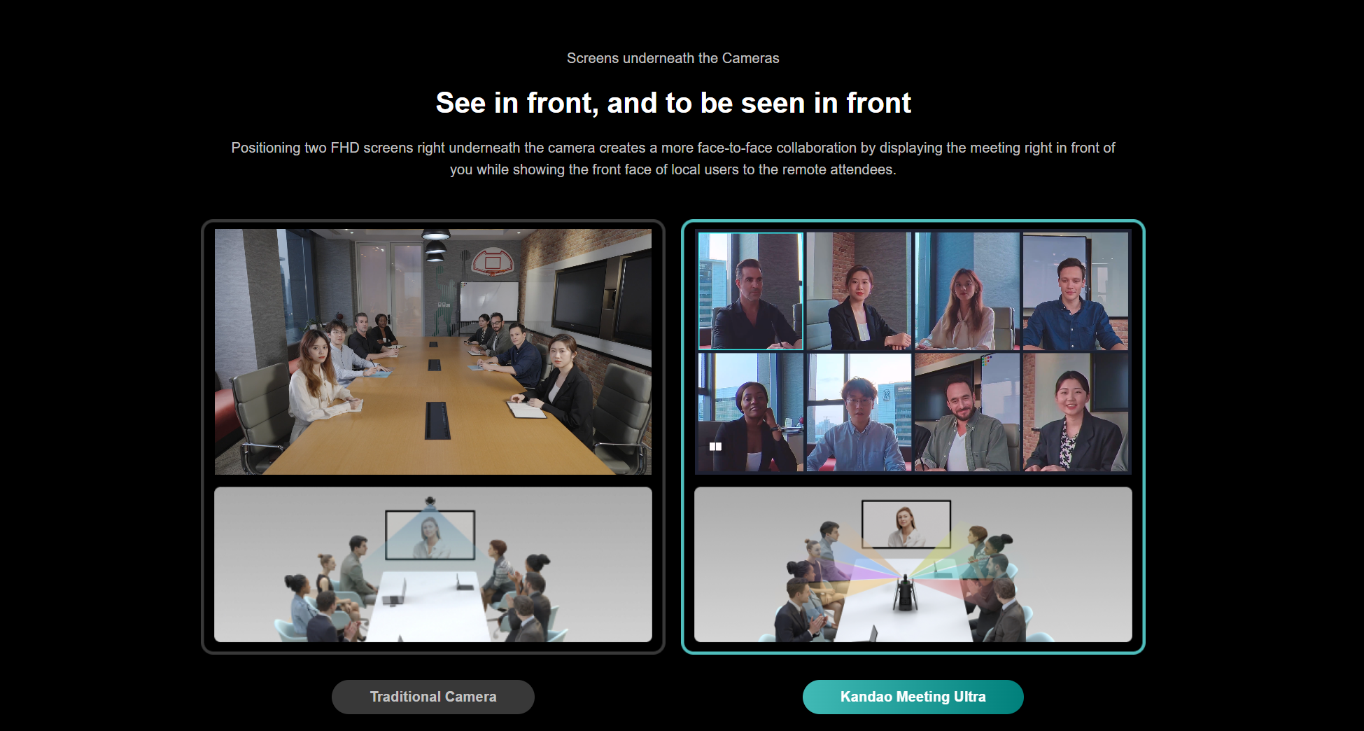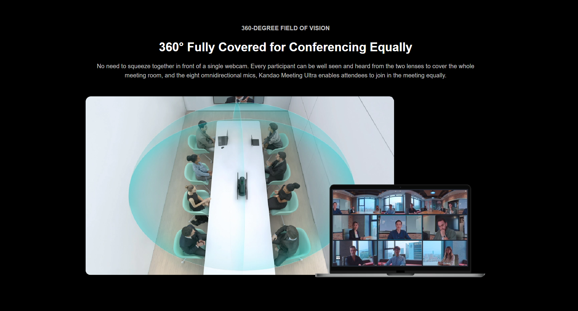 Kandao Meeting Ultra is a conference host that can output up to 4K HDR video. With 2 FHD displays and 10-point capacitive touch, Meeting Ultra can not only be presented in high-definition but also touch-controlled. It has a more powerful AI Detection Algorithm 4.0, a richer choice of Conference Modes, and Ambient Noise Cancellation. Combined with a built-in Android system, where users can download video conferencing software directly onto the device creates a perfect solution for hybrid collaboration.