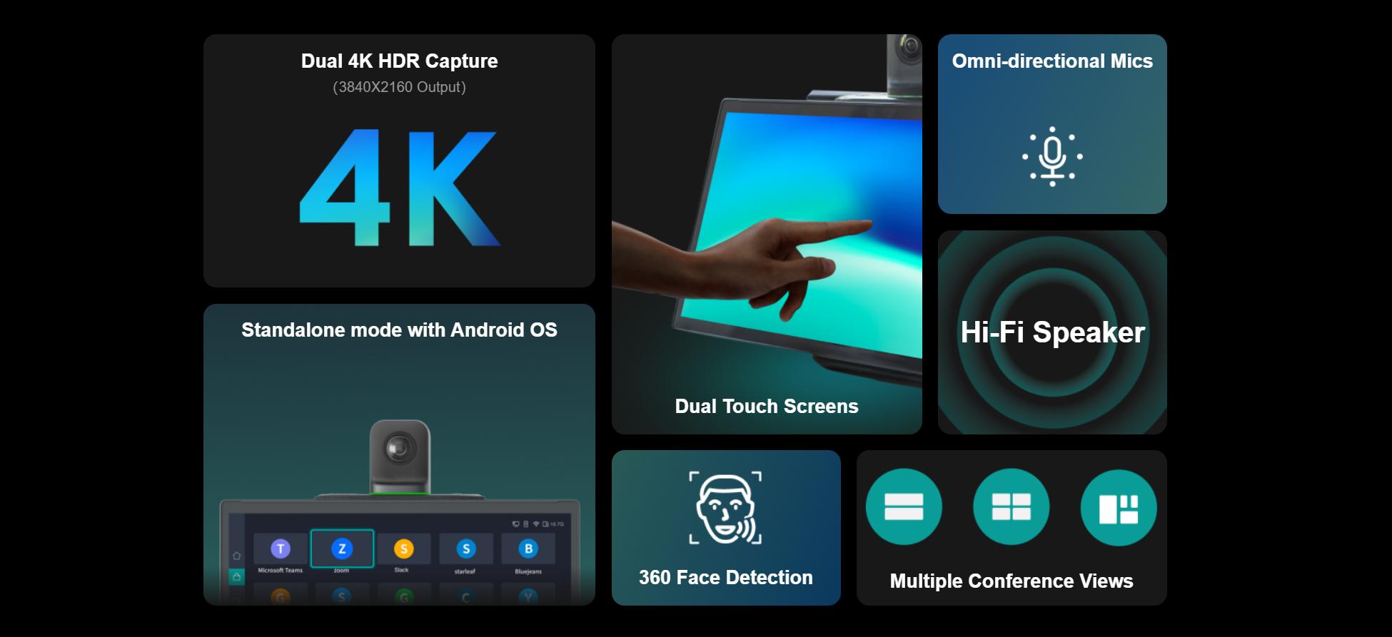 4K 360° AI Auto Tracking Standalone Conference Camera with Dual Touchscreens