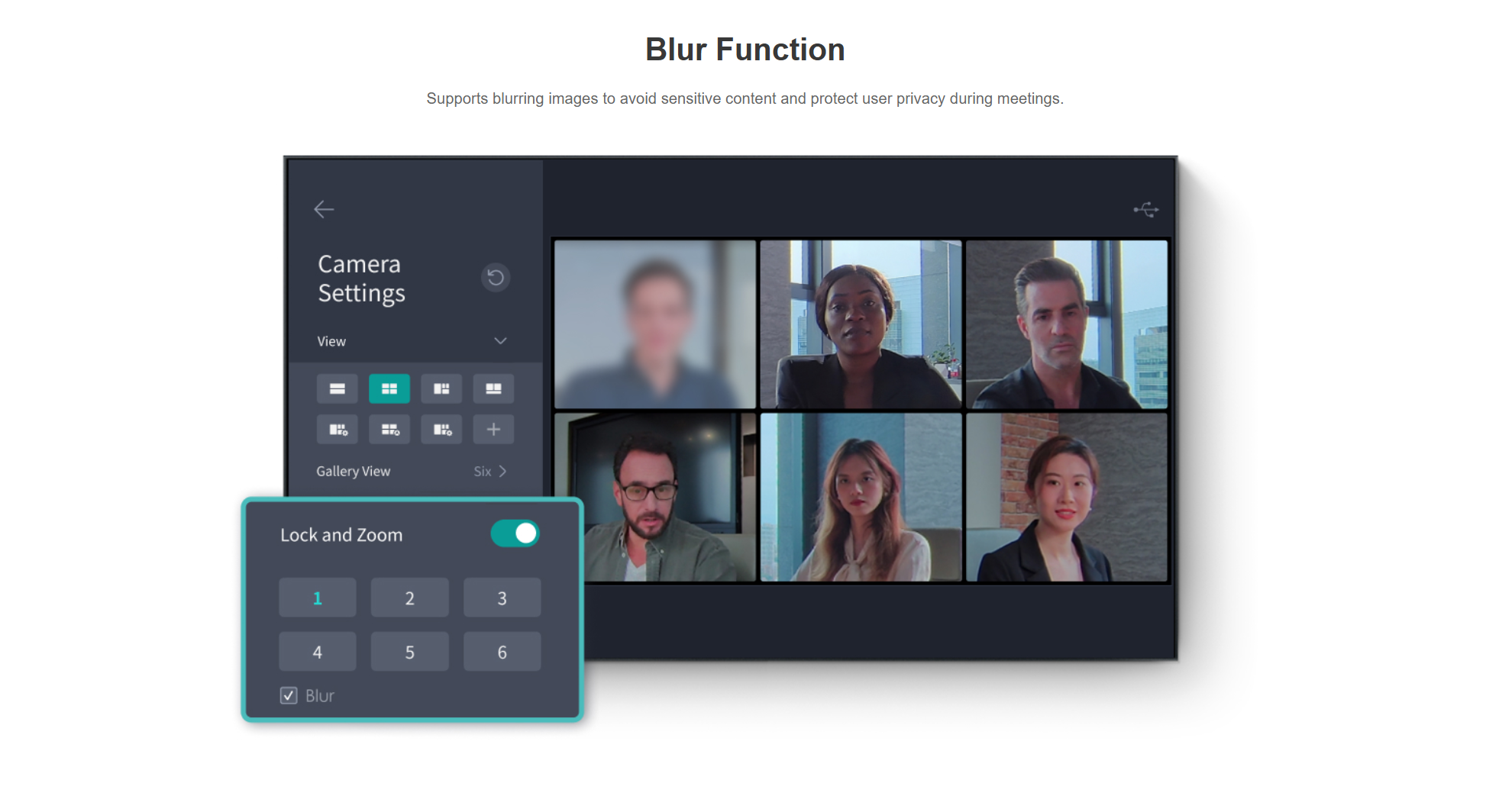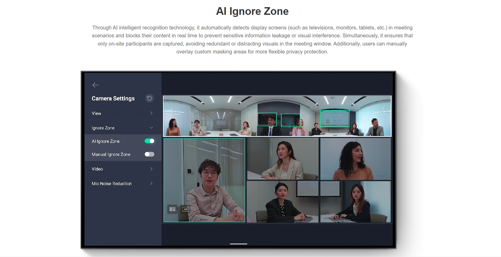 - Highlight Function: Ambient Noise Cancellation; Ignore Zone; Custom Views; Set Attendee Names
