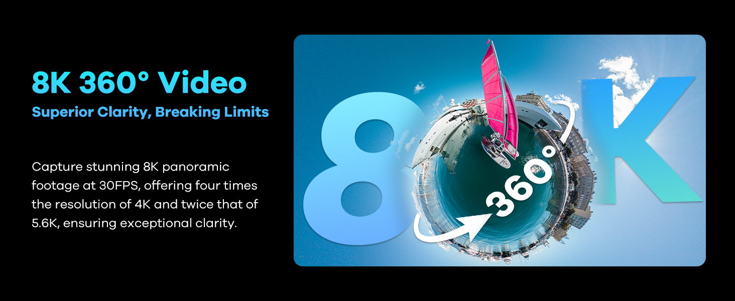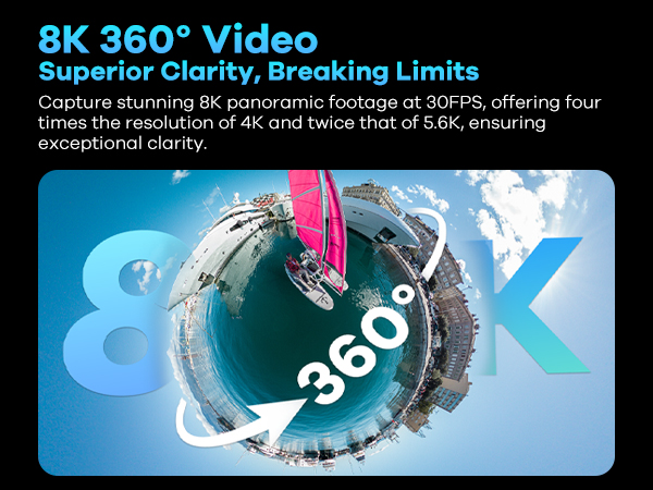 - Exceptional Clarity: Captures stunning true 8K 360 video at 30FPS, offering four times the resolution of 4K and twice that of 5.6K; 96MP 360 photo.