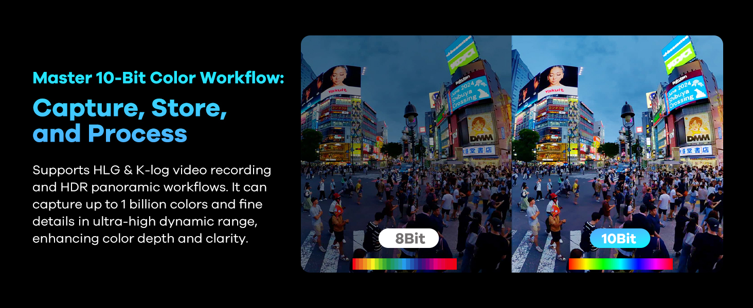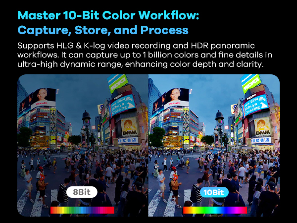 - Professional Color & Detail: Supports 10-bit color depth, DR Boost, DNG 8, HLG, K-Log & HDR Panoramic Workflow with Kandao’s advanced Raw+ algorithm for superior color accuracy, high-quality images, and authentic color representation.