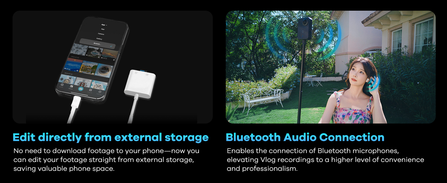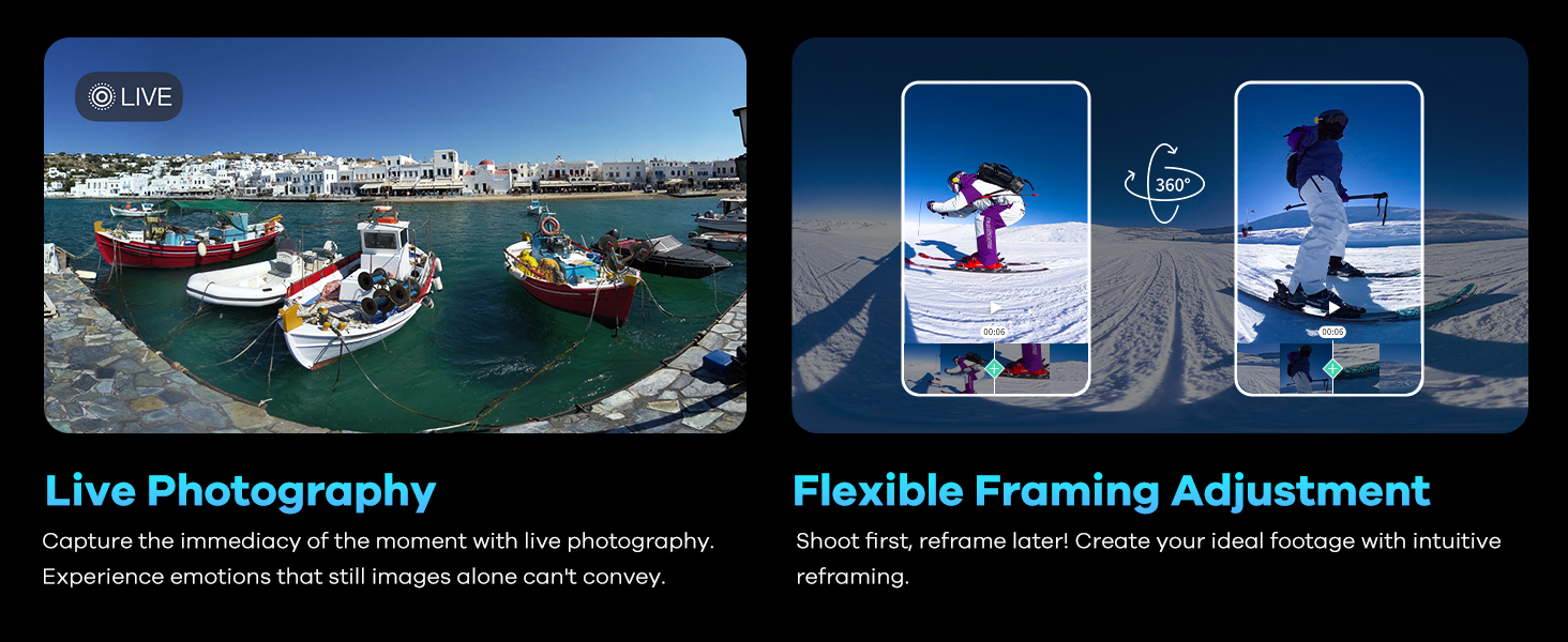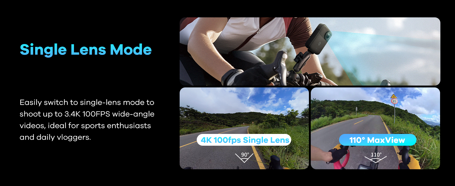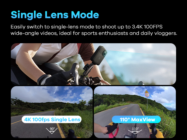 - Versatile Shooting Modes: Offers both 360° Dual-lens and 180° Single-lens modes to adapt to a wide variety of shooting scenarios.