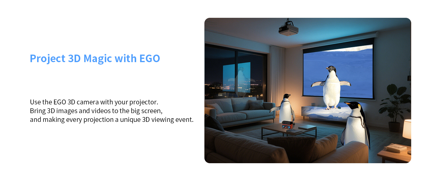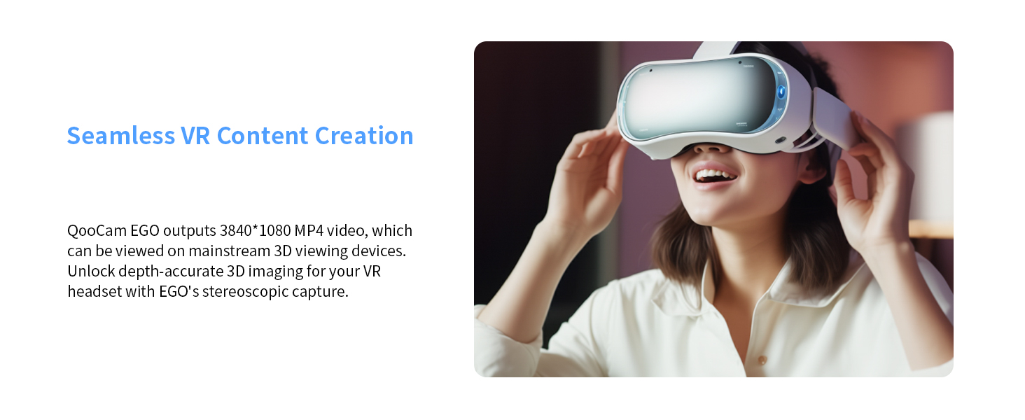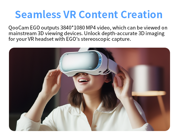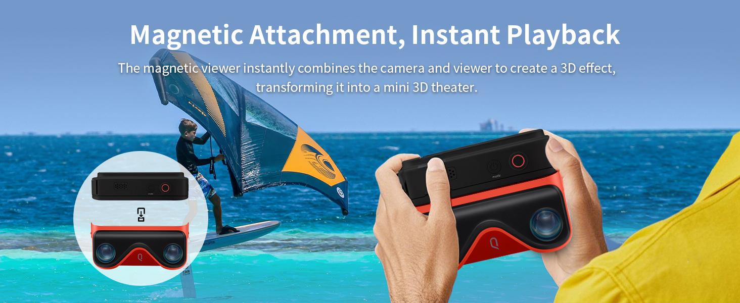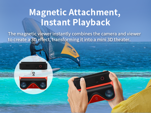 QooCam EGO is the ONLY headset-free 3D camera. Once the 3D viewer is attached to the camera, the system automatically enters the playback mode, you can then relive all of your precious memories.