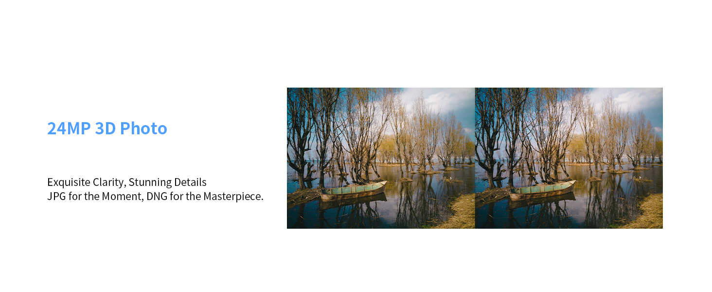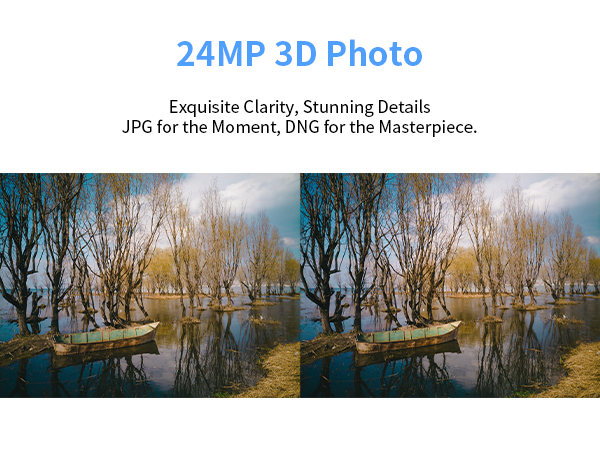 - 4K 60FPS 3D Video, 24MP 3D Photo (DNG/JPG).